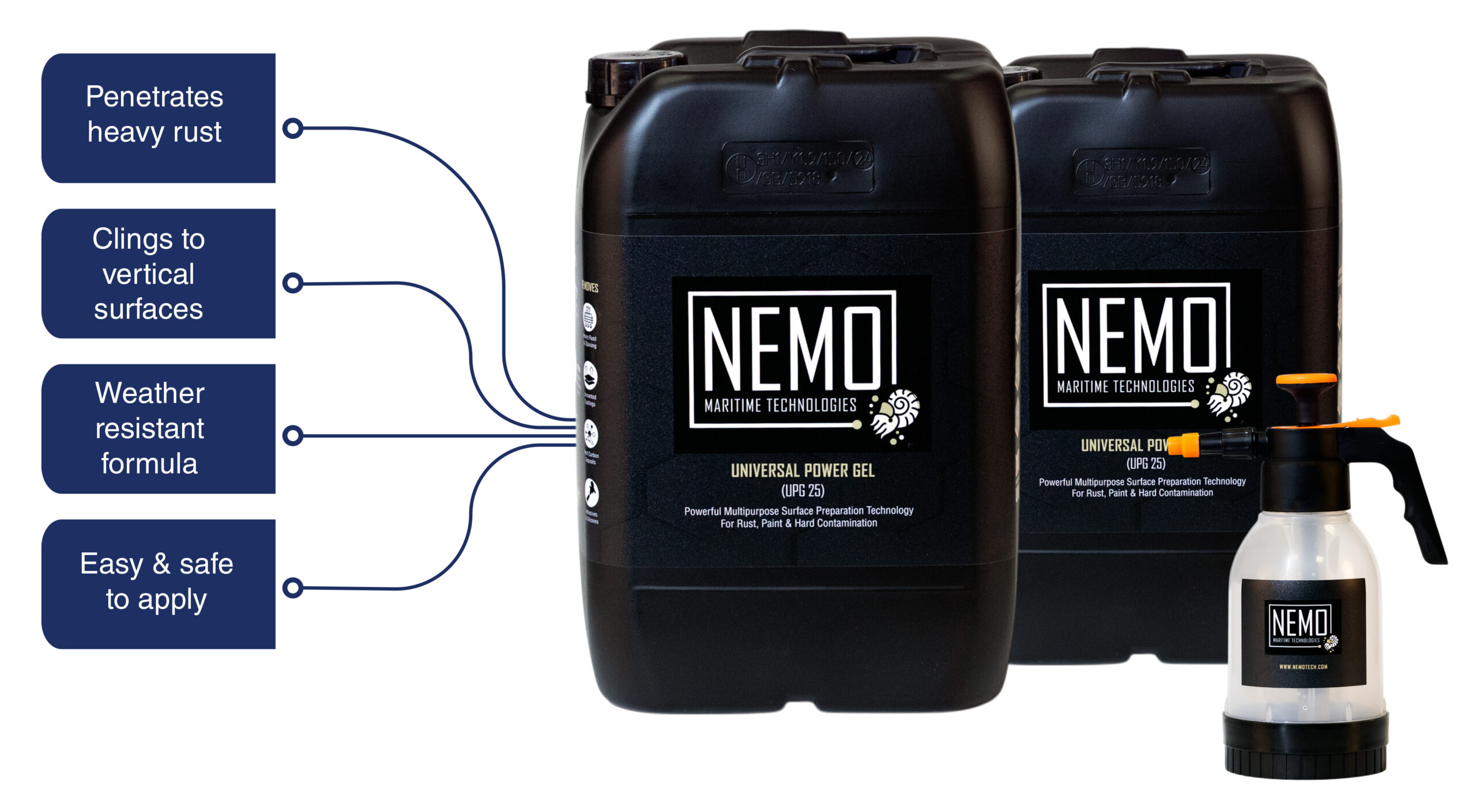 Your go-to weapon for tackling the toughest jobs on board — from heavy rust and baked-on carbon to stubborn coatings and unwanted paint. This highly effective gel can be sprayed or brushed directly onto affected areas, clinging to vertical and irregular surfaces where traditional liquids run off or fail to penetrate. It does the heavy lifting where harsh acids, aggressive caustics, or chiselling tools are usually needed — but without the risk or hassle.
