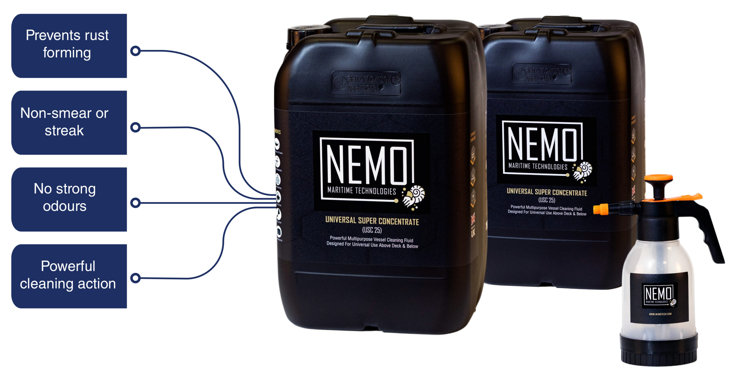 Tough jobs don’t need a shelf full of solutions. Whether it’s rust on deck, carbon buildup in the engine room, grease-packed filters, or galley grime — Universal Super Concentrate handles it all with one smart, powerful formula. It replaces a clutter of products with a single, high-performance cleaner that works everywhere on board.
